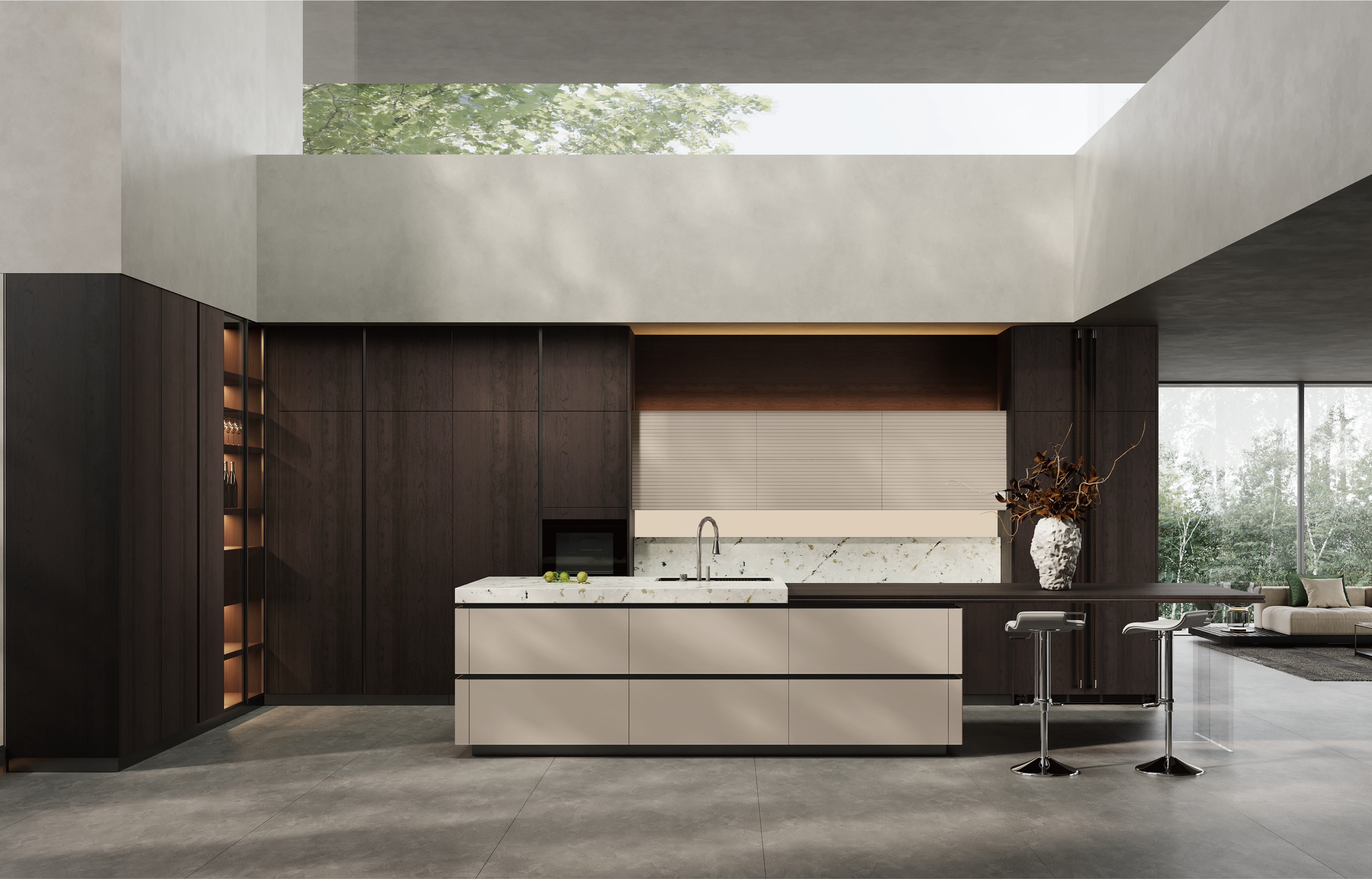 通过腾龙集团厨柜量体裁柜,定制出适合主厨下厨的烹饪区和洗涤区的舒适高度。